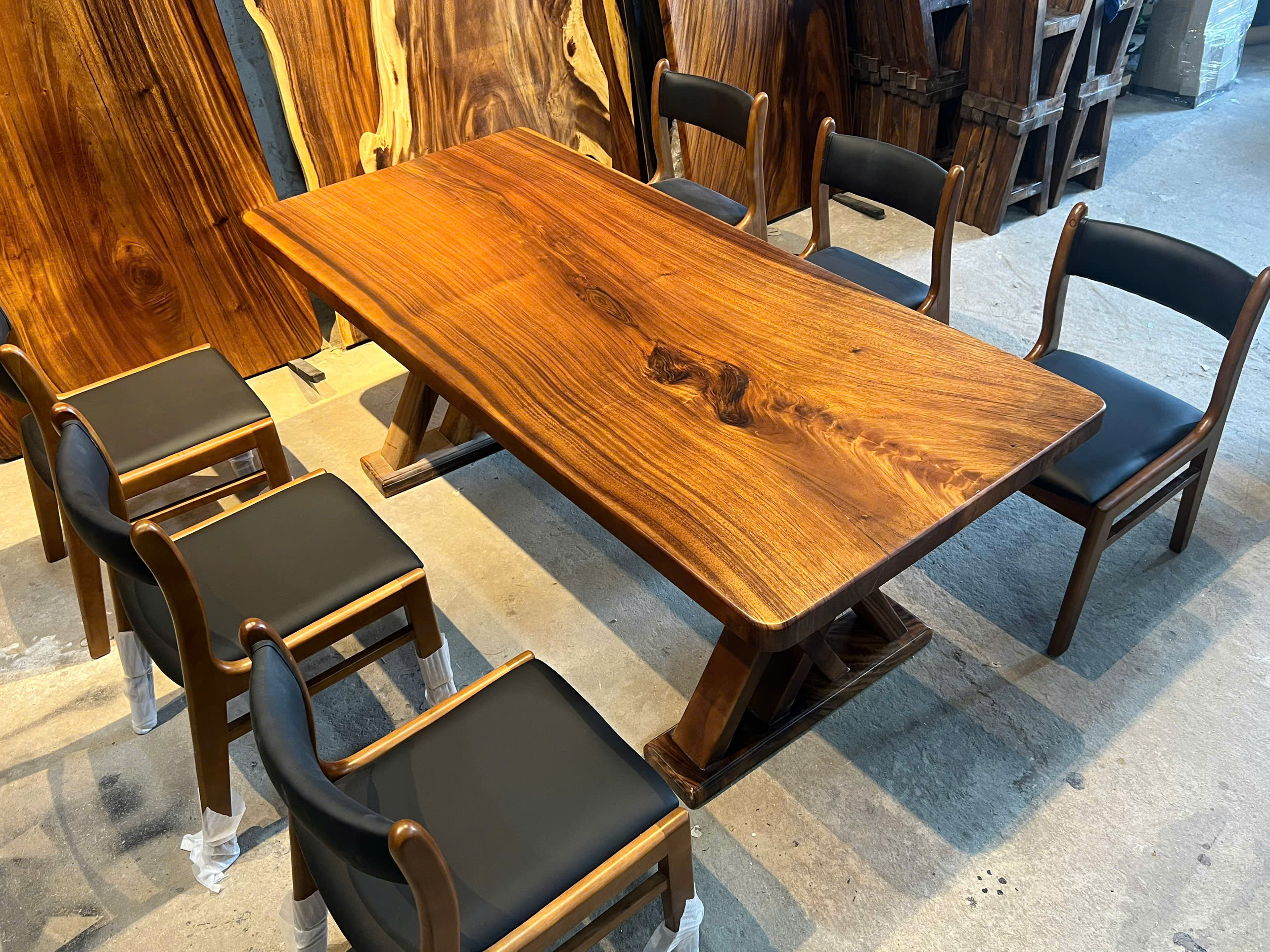 | Chất liệu mặt bàn | Gỗ me tây nguyên khối (100% tự nhiên) | |