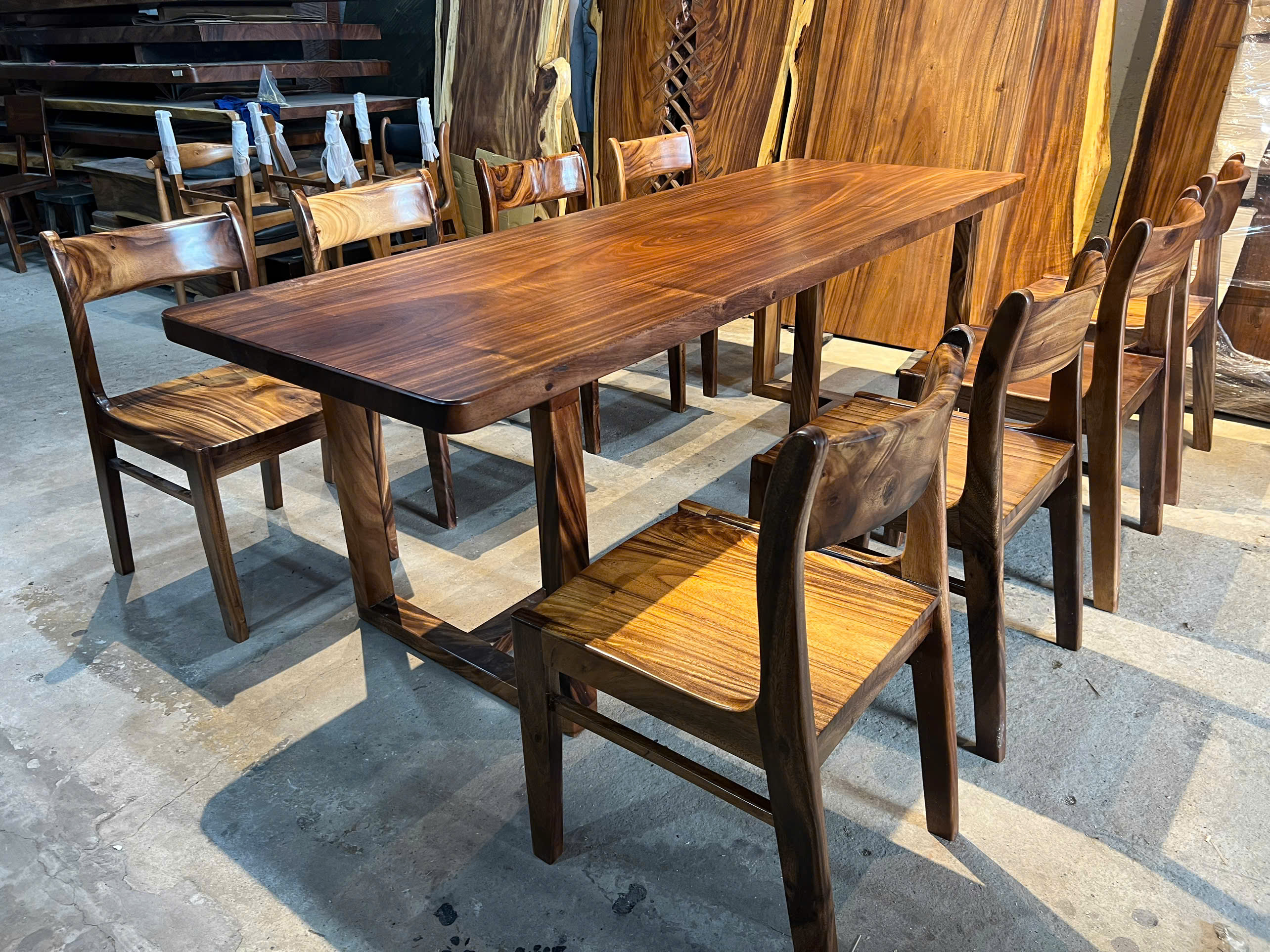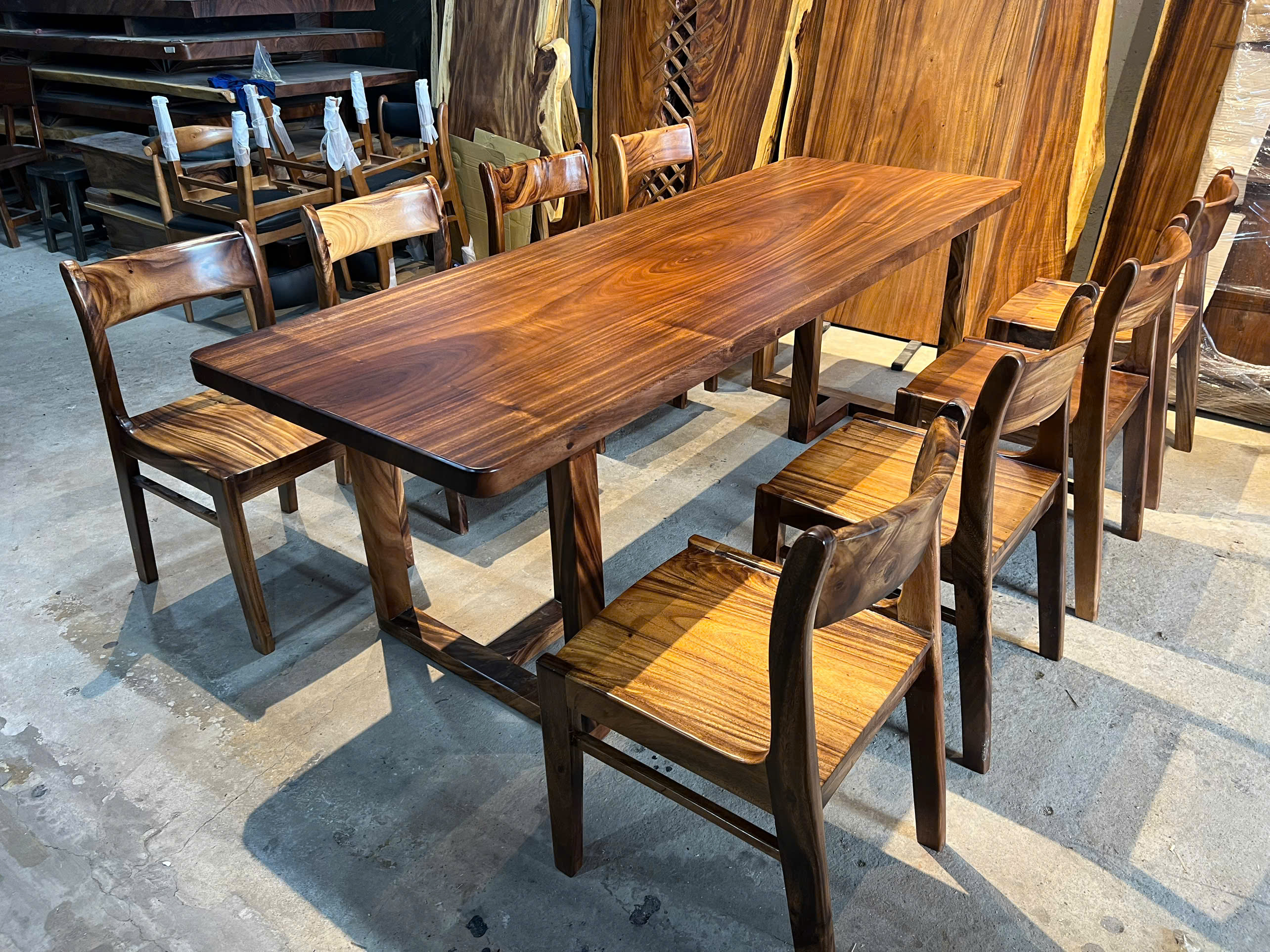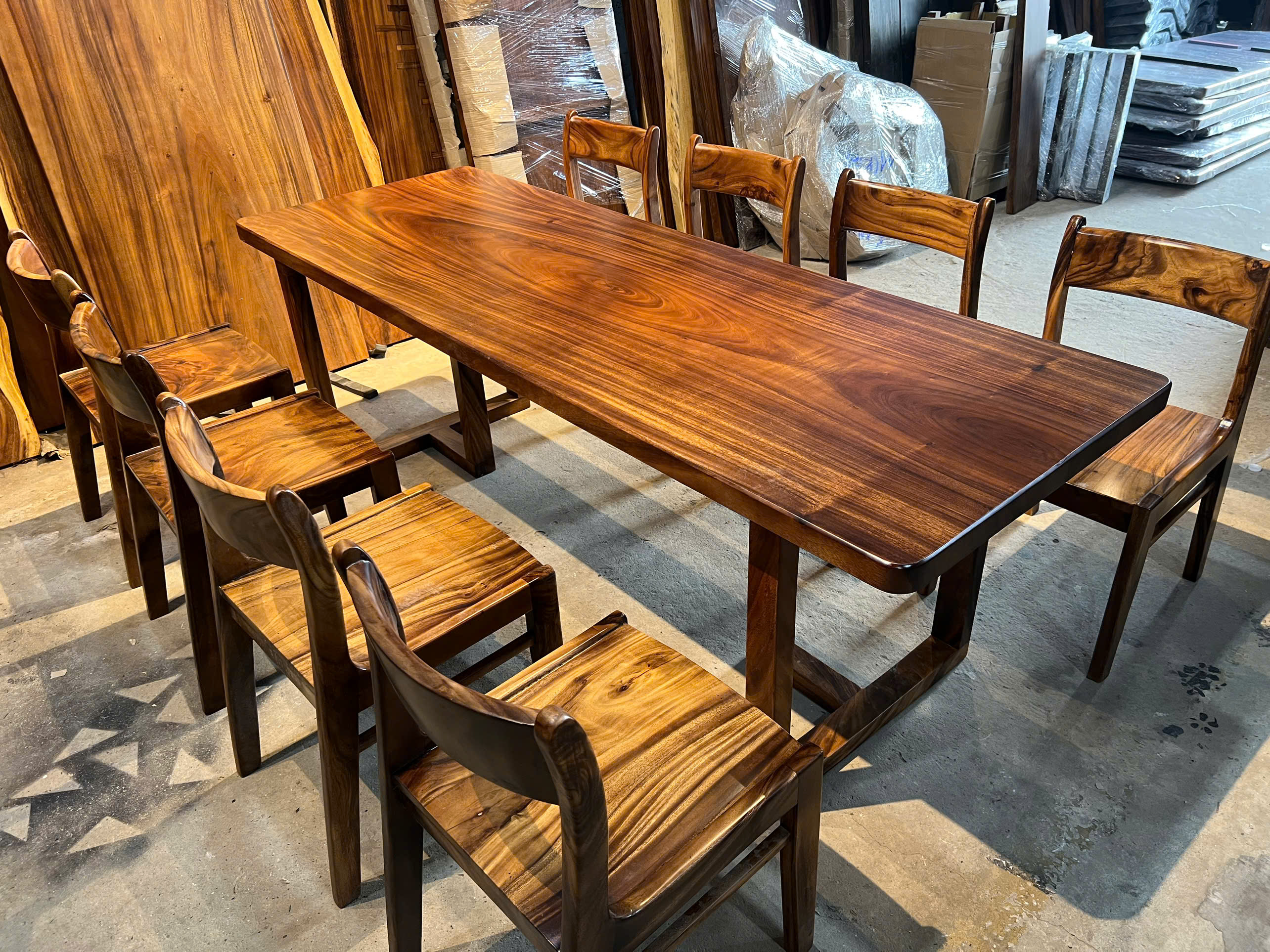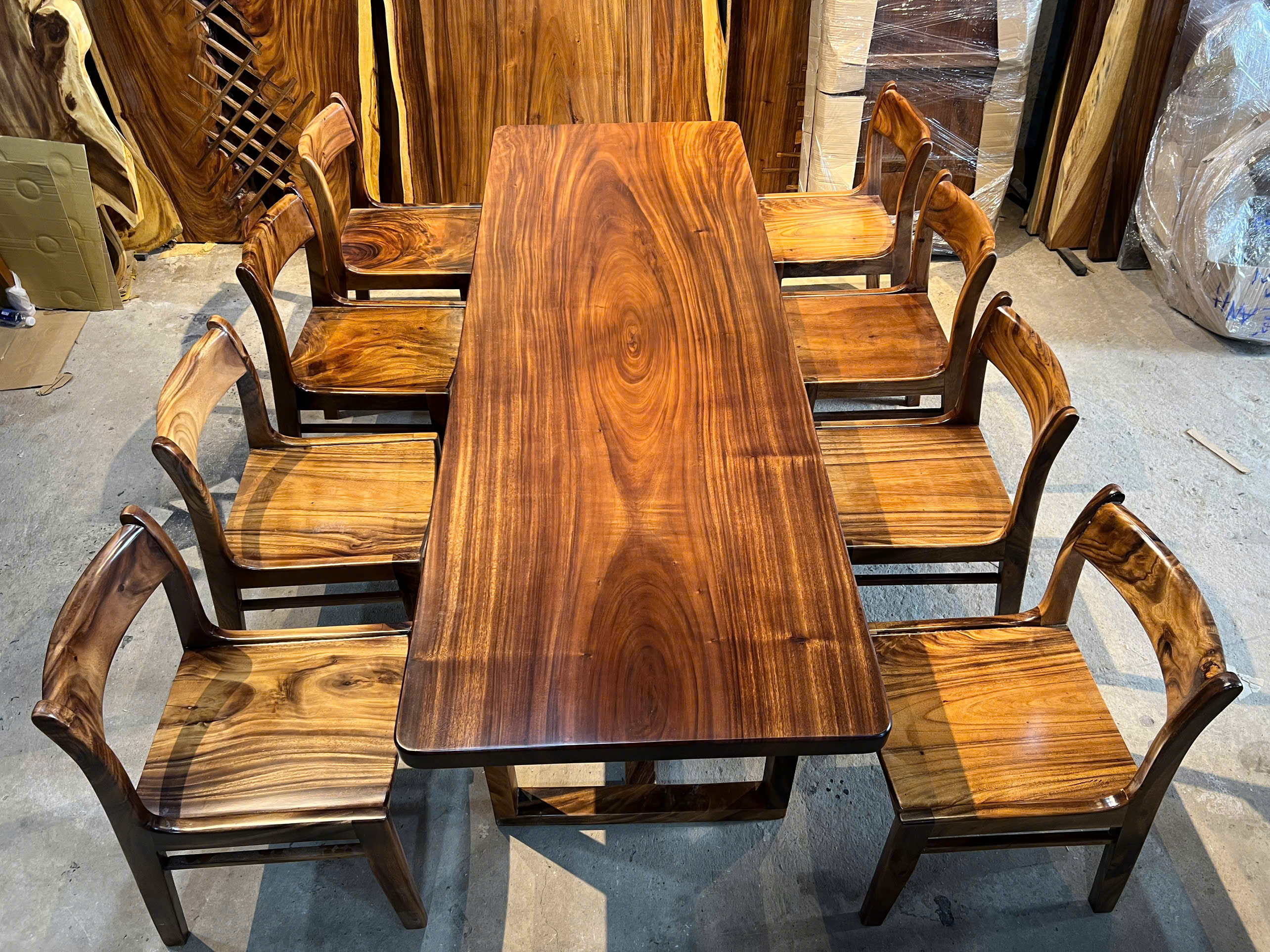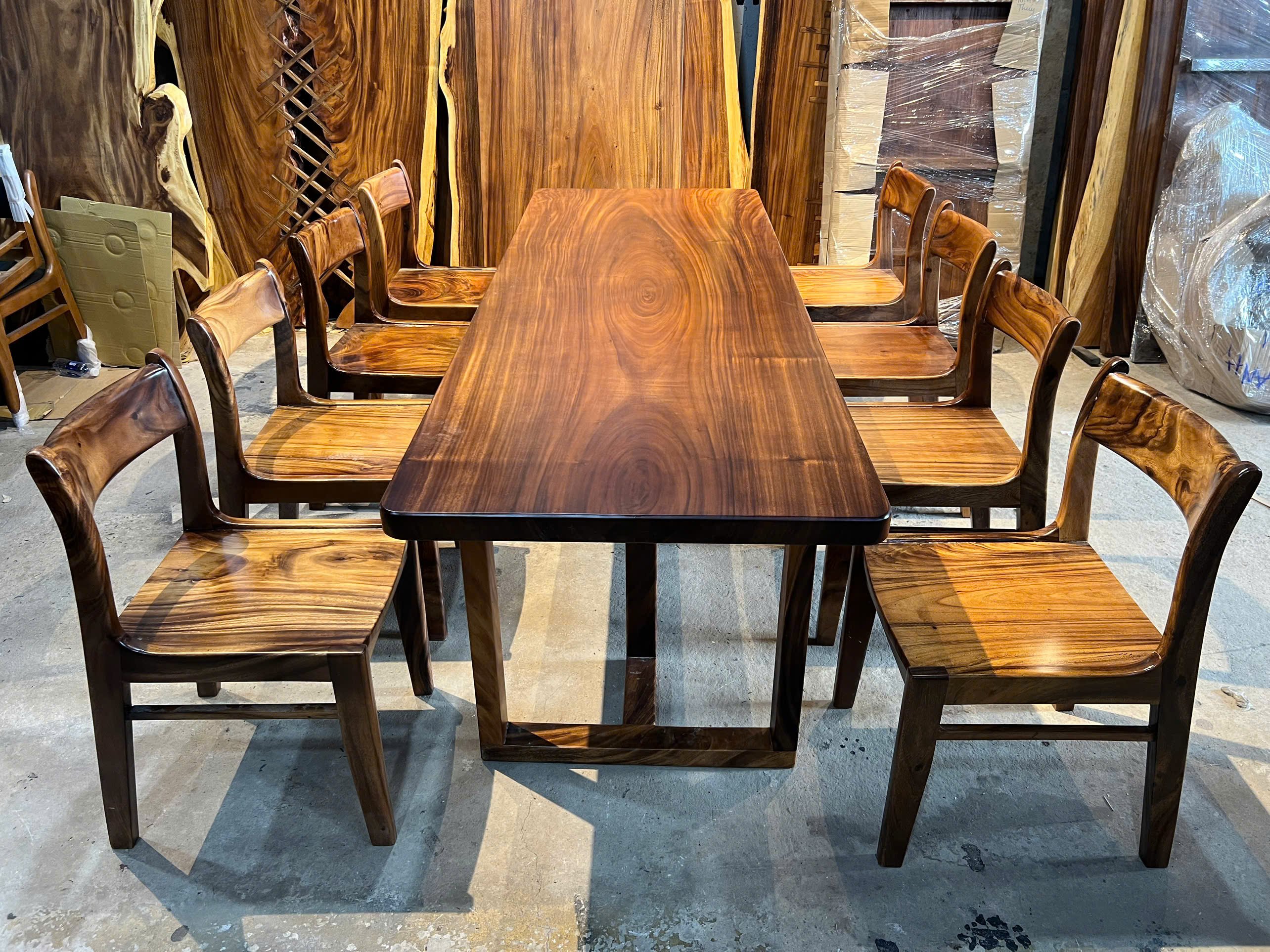 | Chất liệu mặt bàn | Gỗ me tây nguyên khối (100% tự nhiên) | |