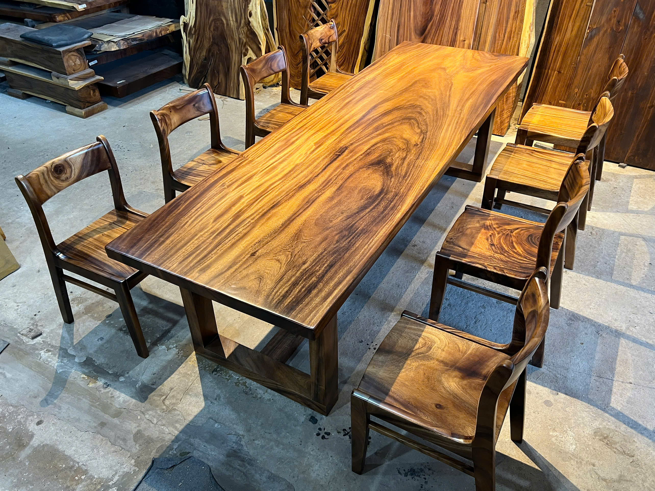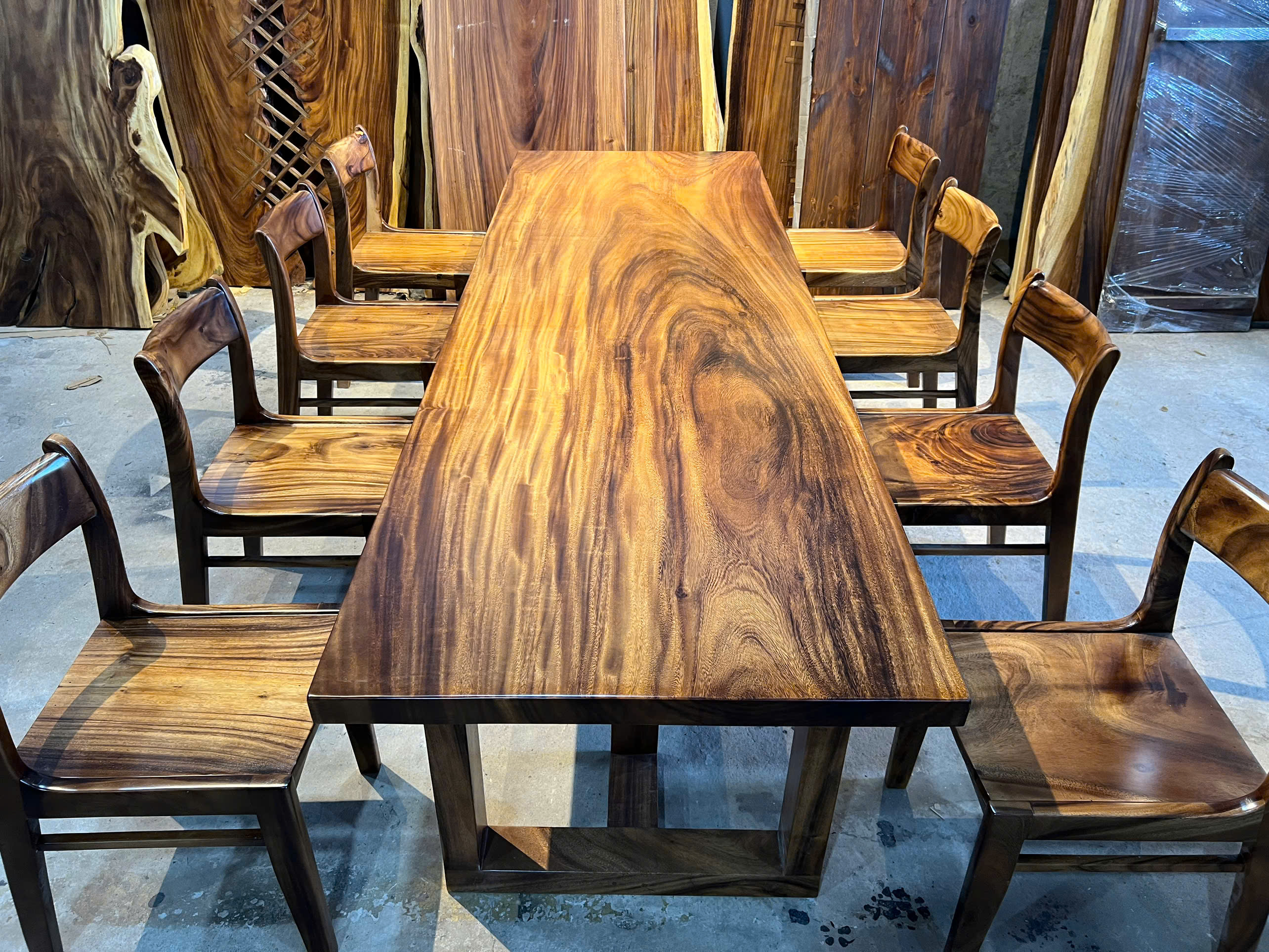 Mỗi mẫu bàn gỗ me tây giá rẻ là một tác phẩm độc bản, nơi những đường vân gỗ uốn lượn mềm mại hòa quyện cùng sắc nâu trầm ấm, tạo nên điểm nhấn sang trọng nhưng vẫn gần gũi cho mọi không gian.