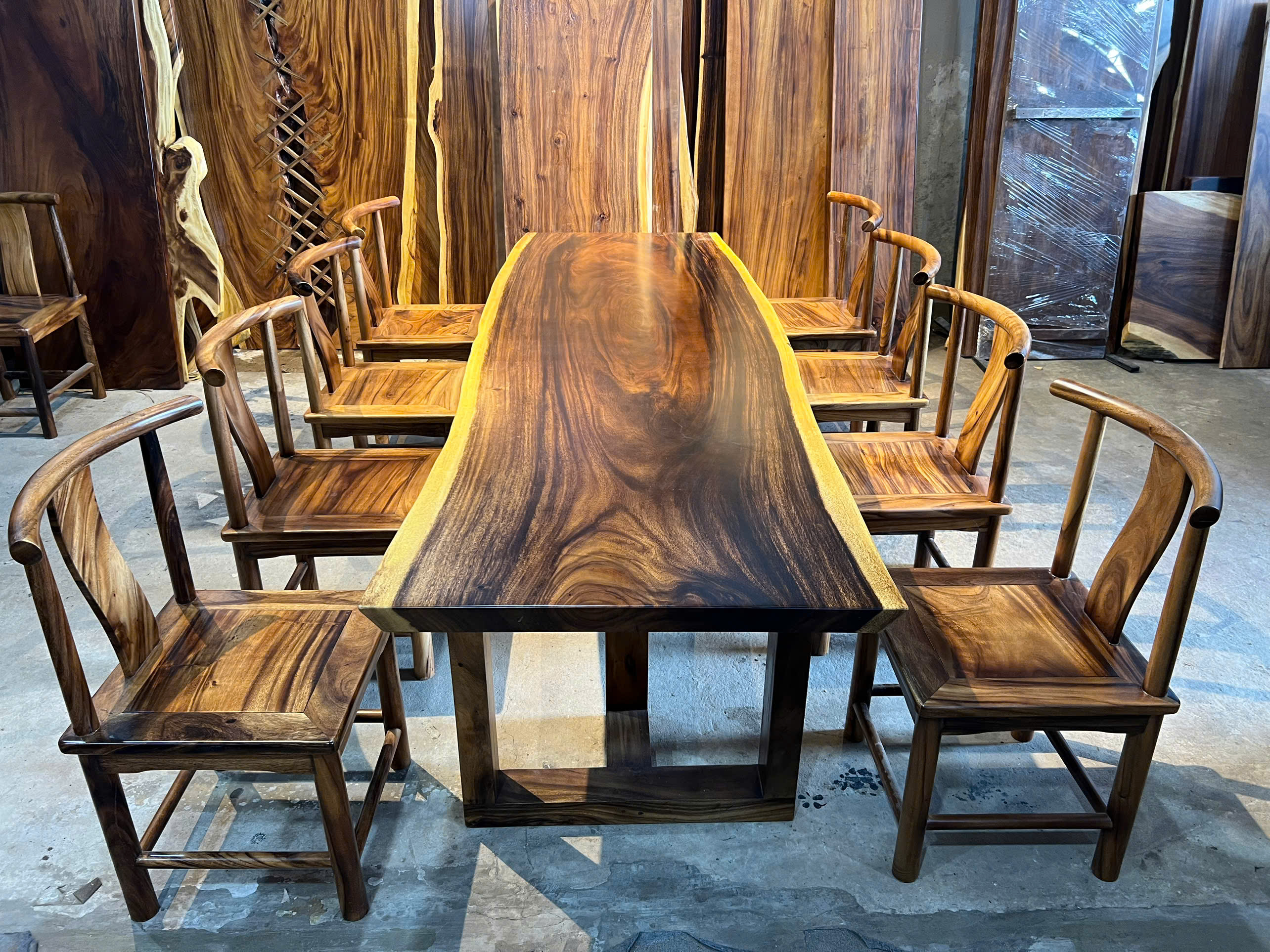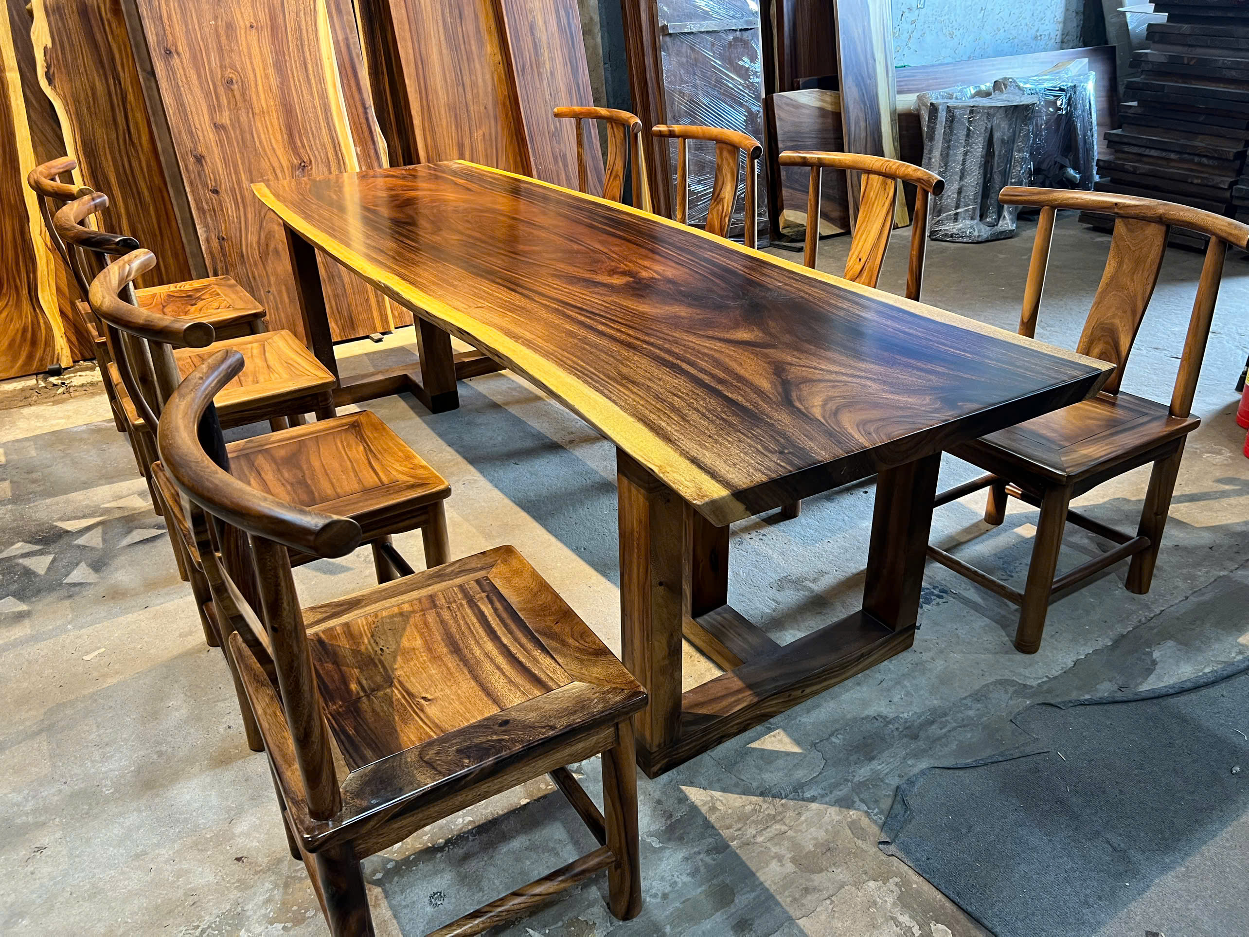 | Chất liệu mặt bàn | Gỗ me tây nguyên khối (100% tự nhiên) | |