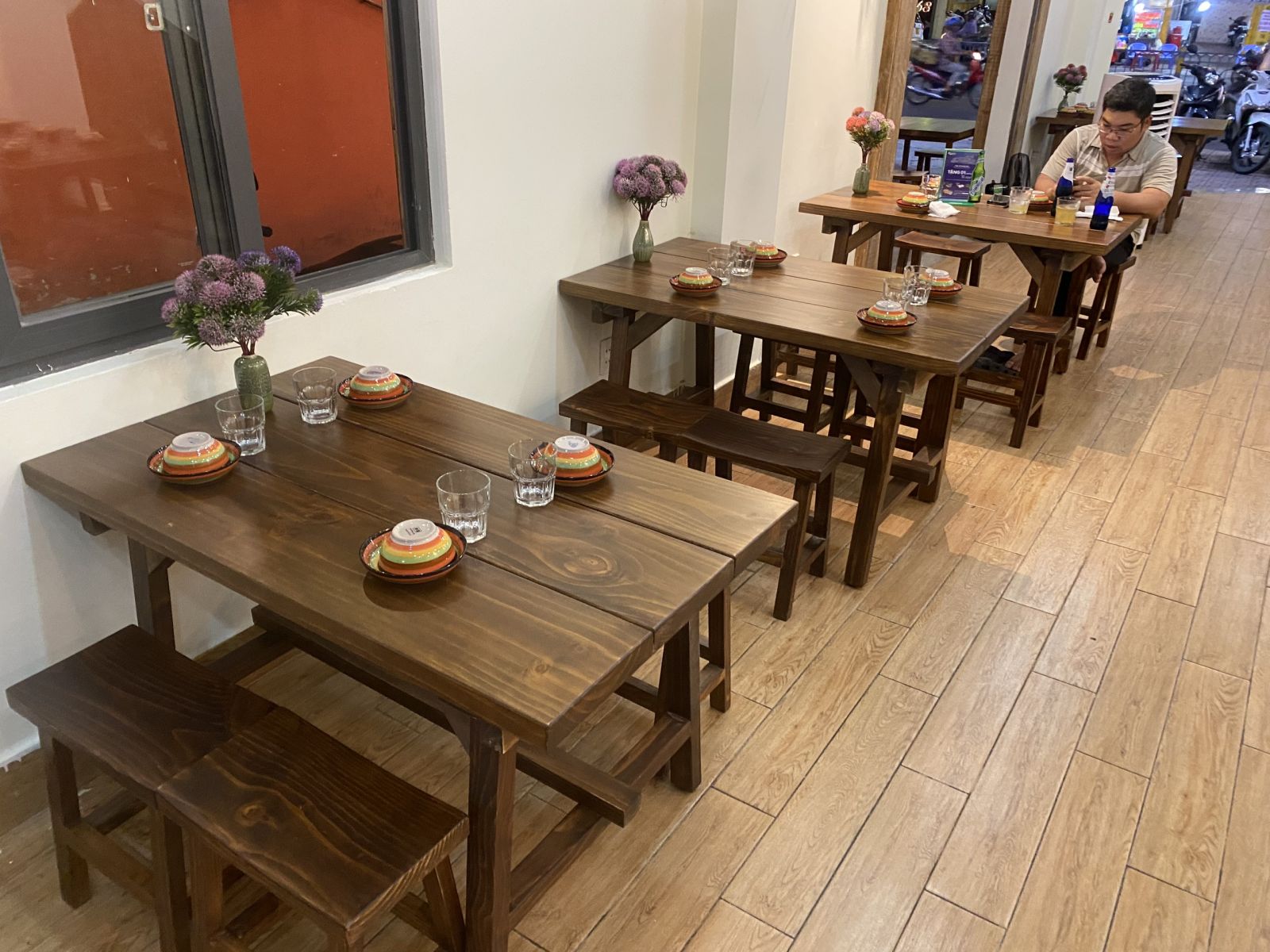 Bộ bàn ghế gỗ thông vintage là lựa chọn hoàn hảo cho nhà hàng, quán ăn, quán nhậu và quán cà phê. Thiết kế đơn giản, sang trọng với mặt bàn rộng 70cm và ghế đôn mặt lõm giúp ngồi thoải mái, tiết kiệm không gian. Gỗ thông tự nhiên bền đẹp, chống cong vênh, dễ vệ sinh. Sản phẩm có nhiều kích thước từ 1m2 đến 1m8, phù hợp nhiều không gian kinh doanh. Phong cách vintage mang lại cảm giác ấm cúng, tinh tế, nâng tầm không gian. Giá tốt – chất lượng cao – đầu tư lâu dài.