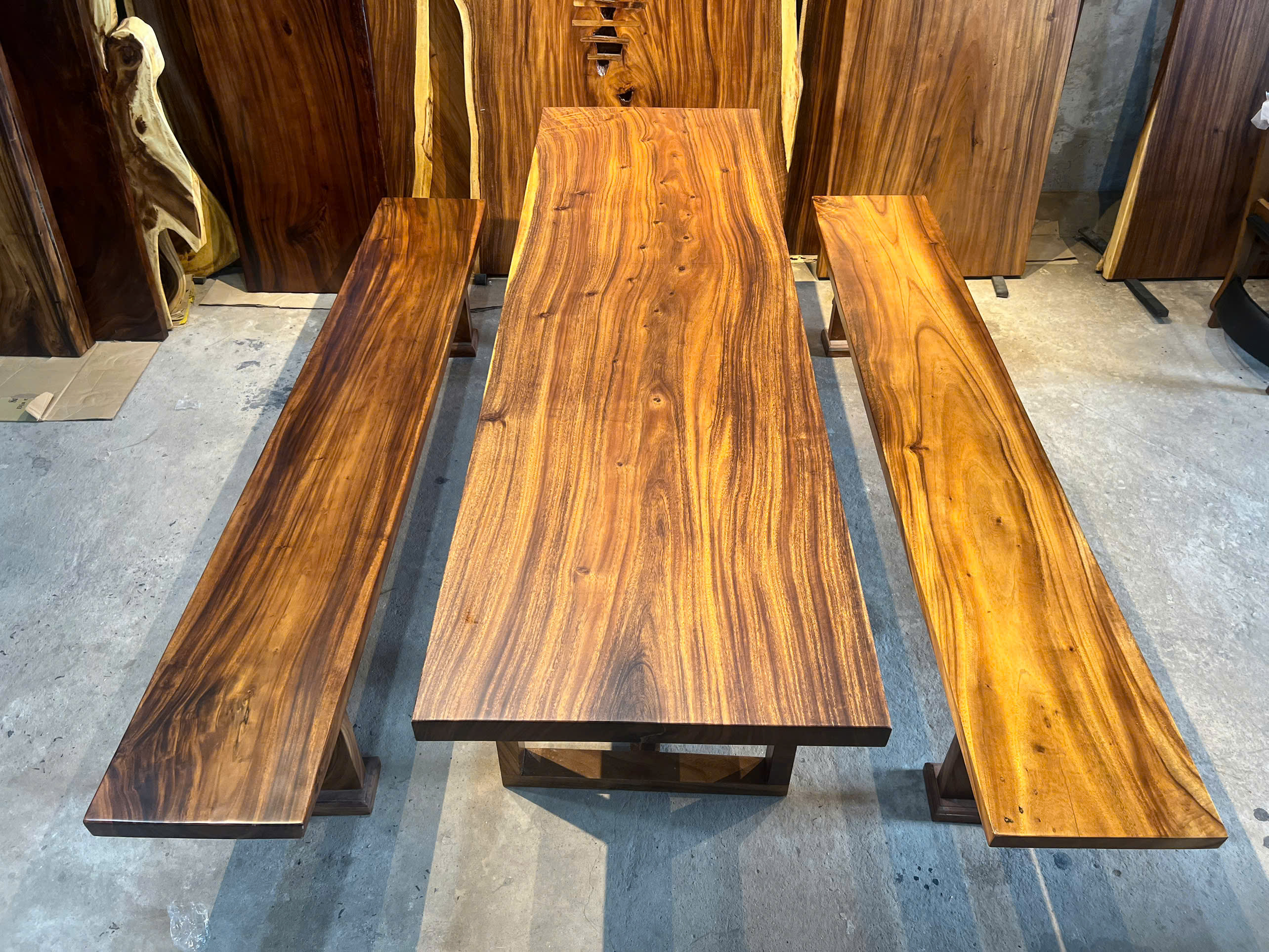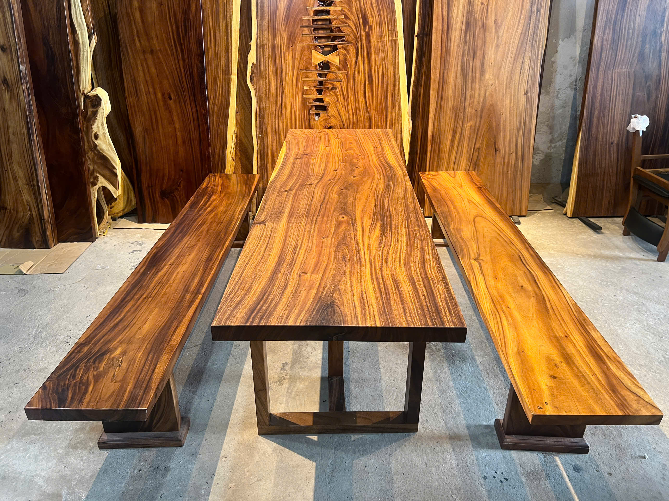 | Chất liệu mặt bàn | Gỗ me tây nguyên khối (100% tự nhiên) | |