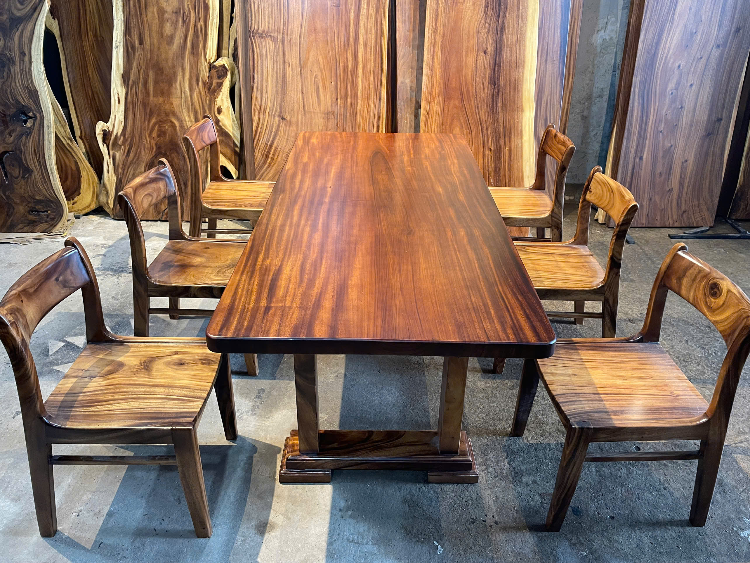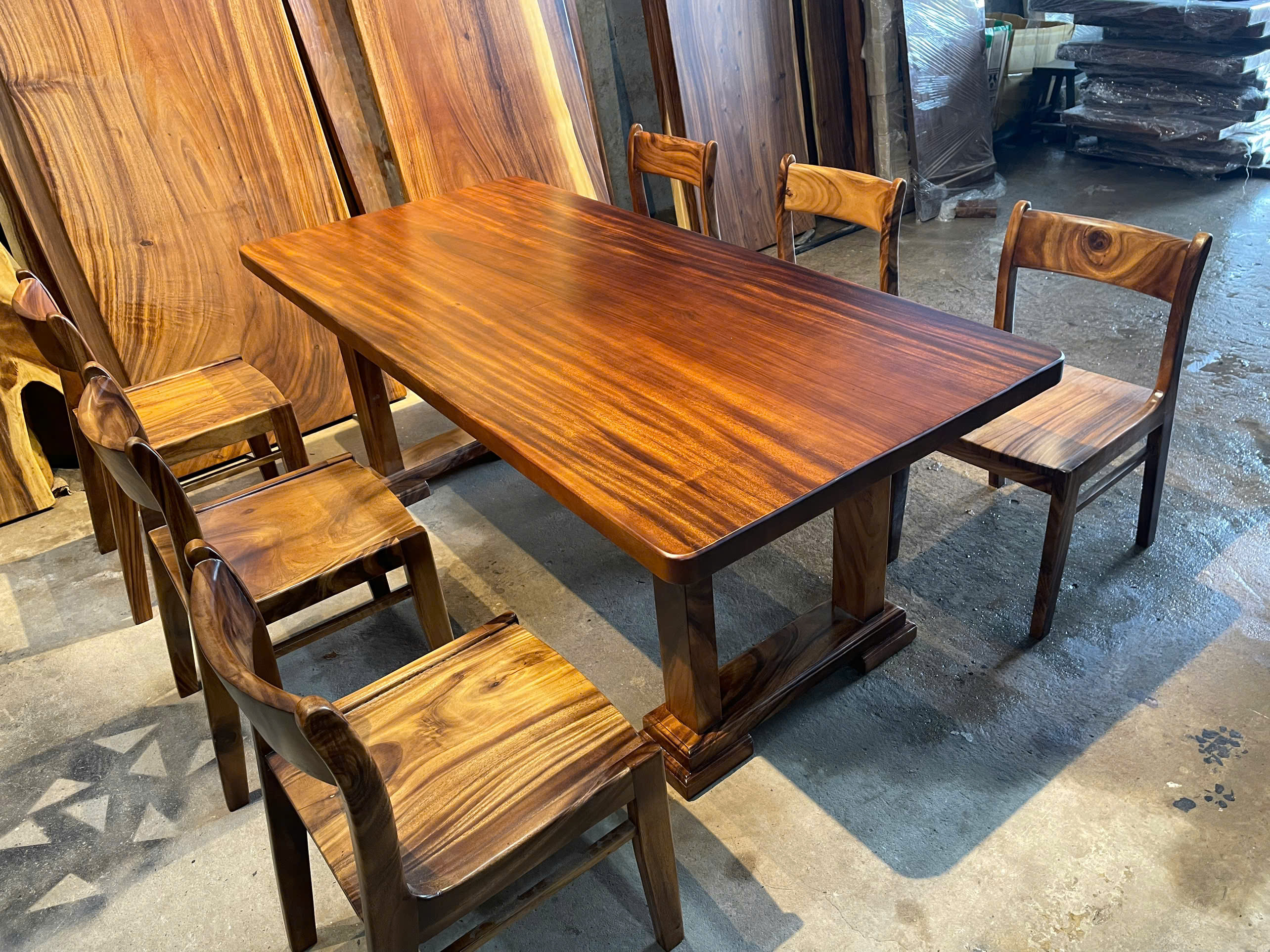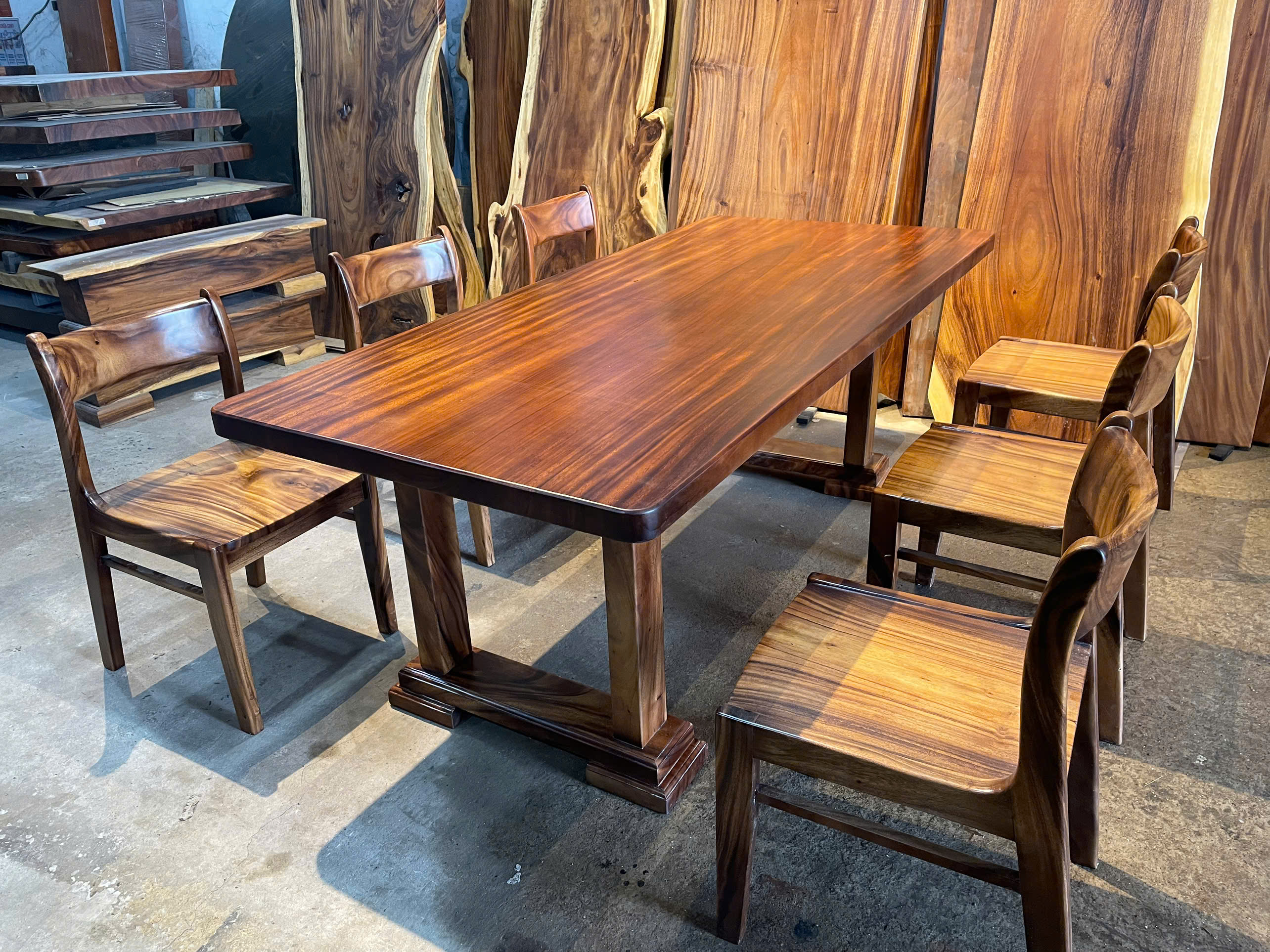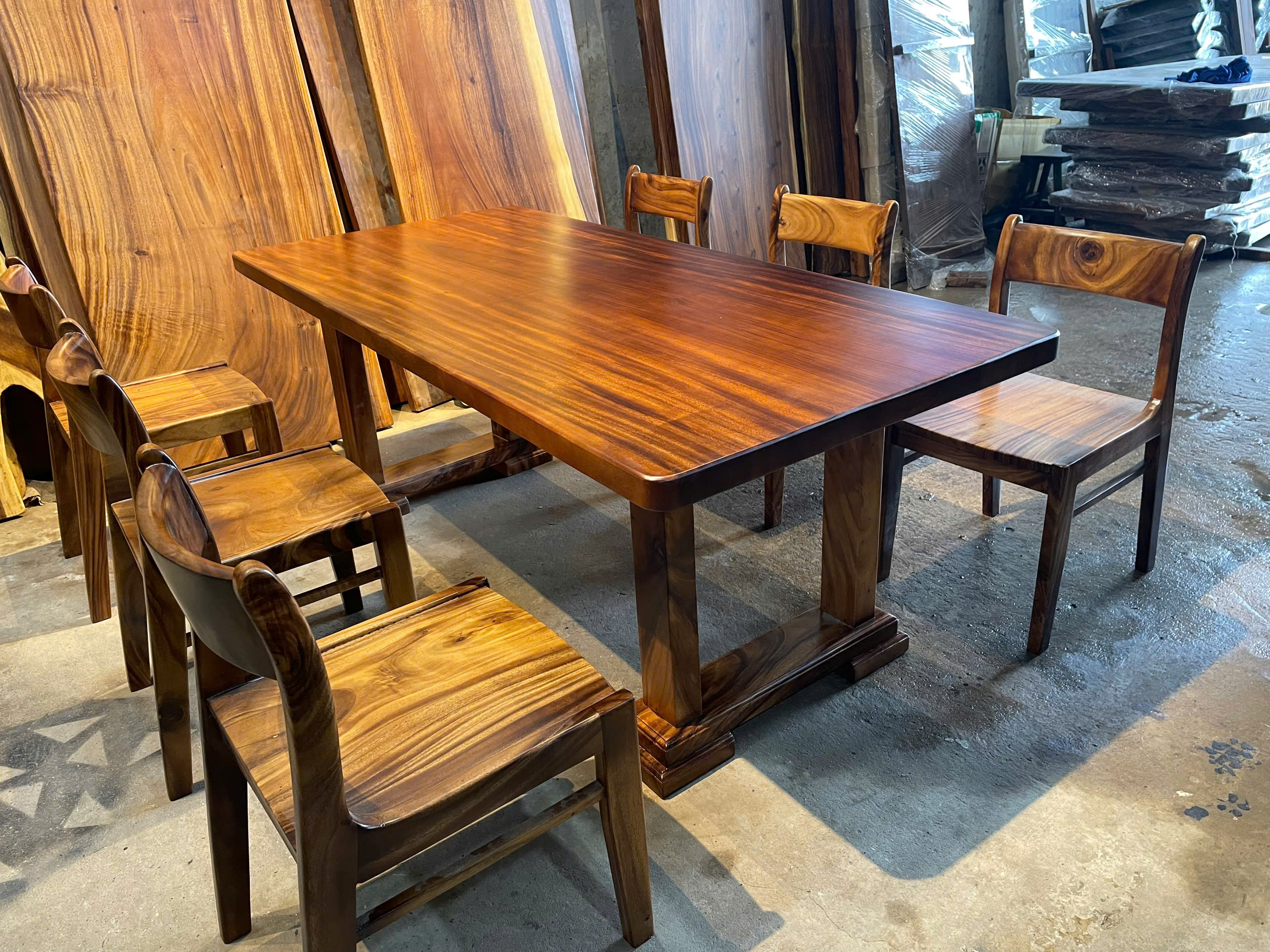 | Chất liệu mặt bàn | Gỗ me tây nguyên khối (100% tự nhiên) | |