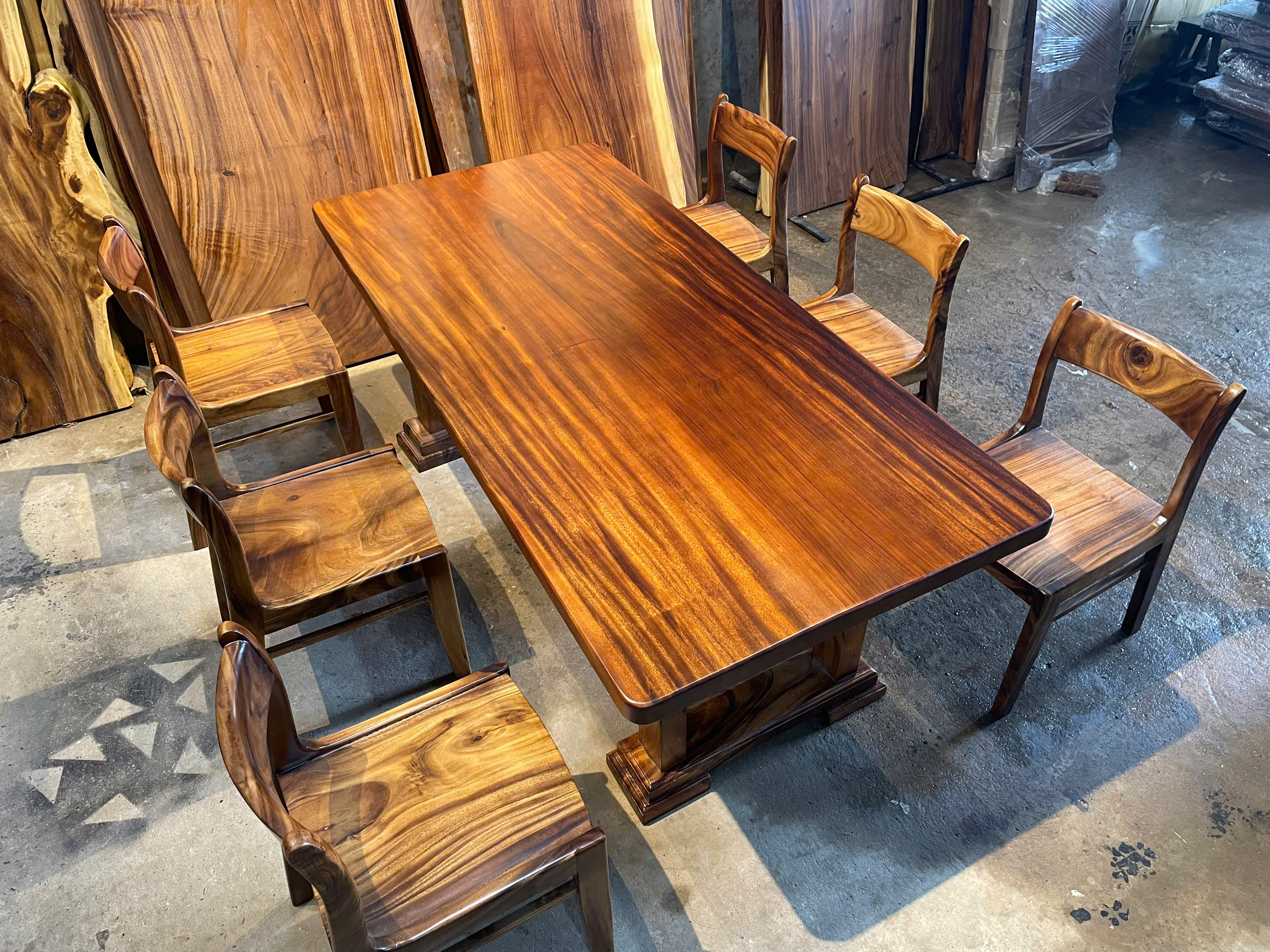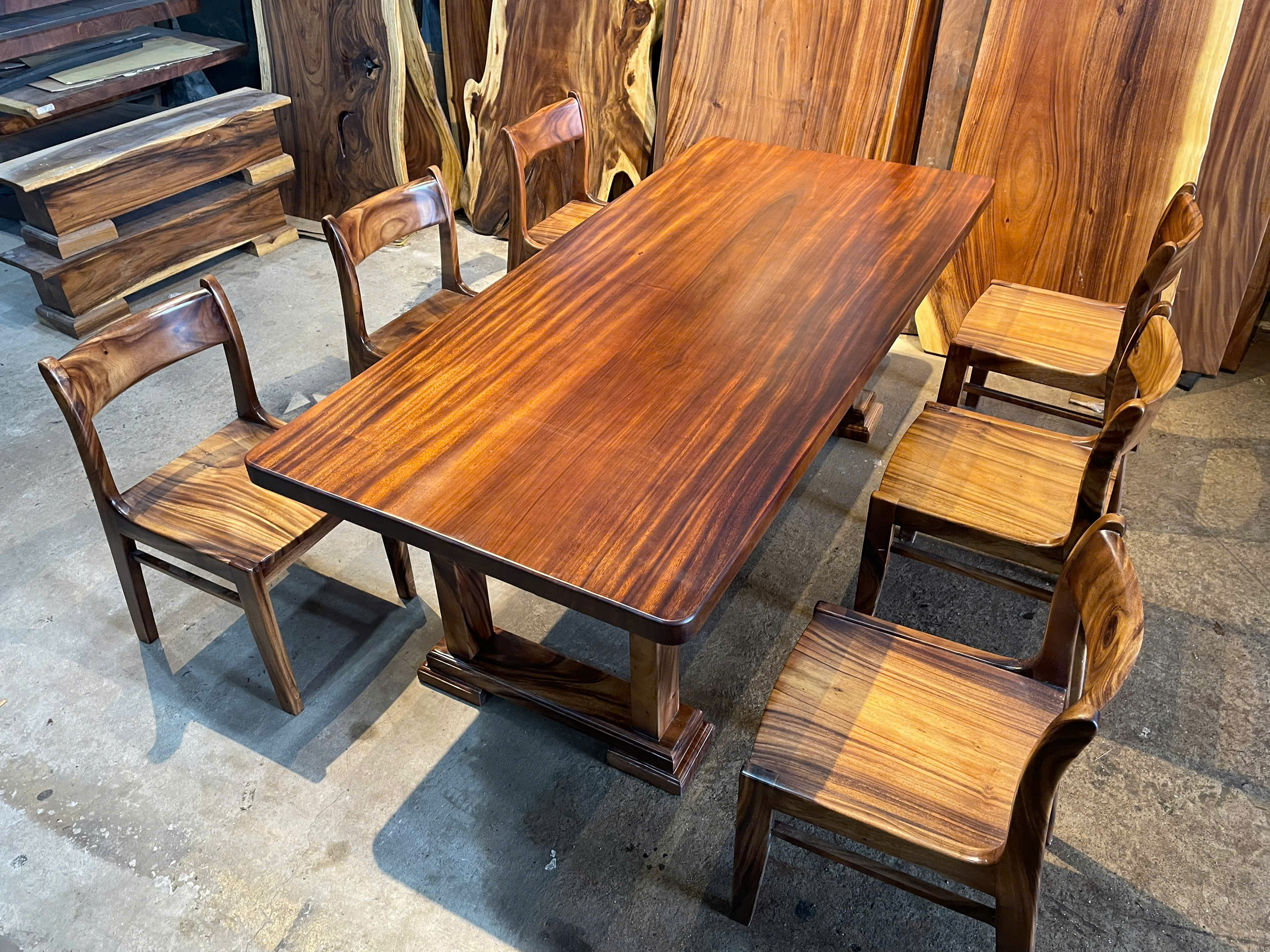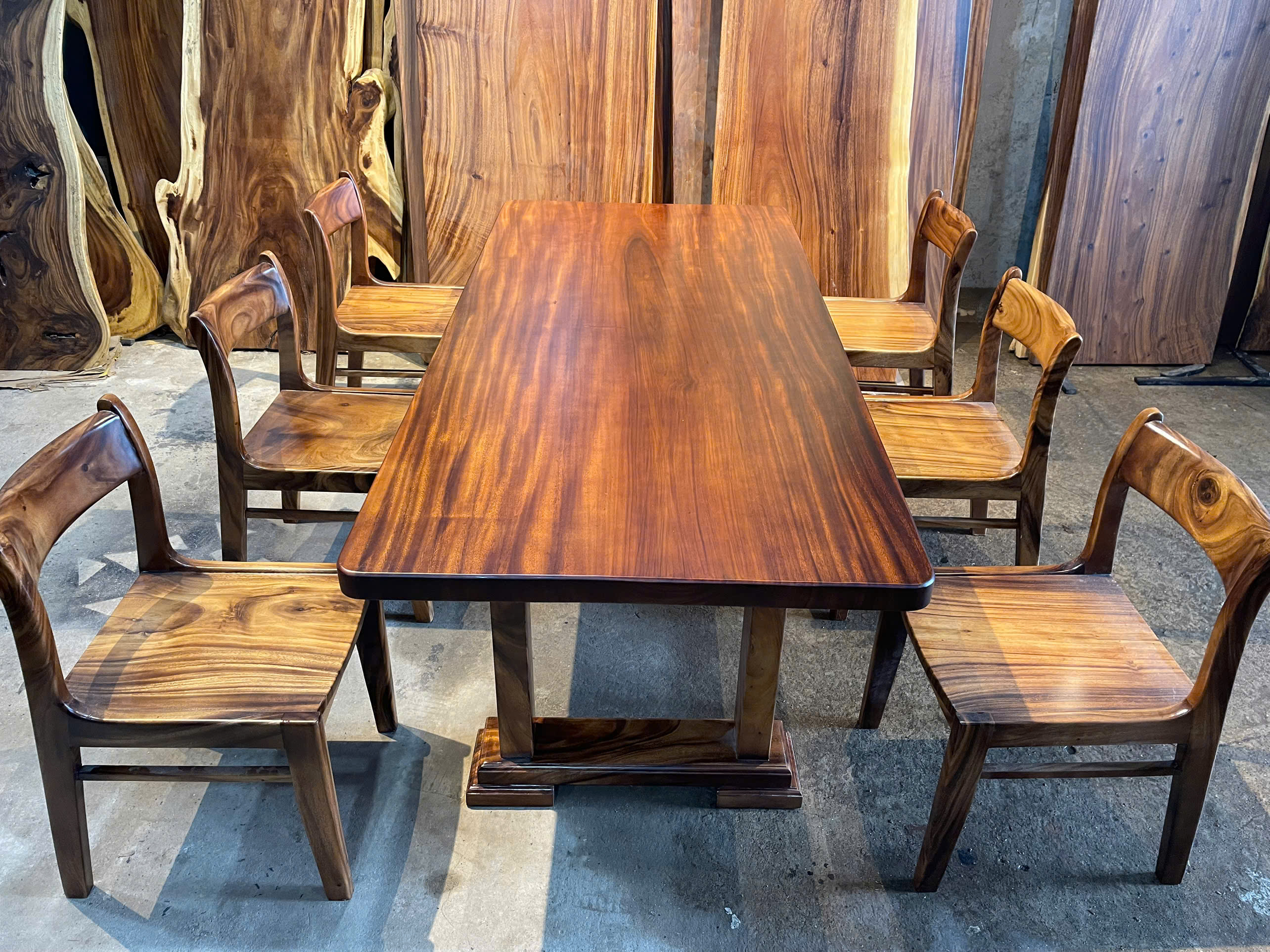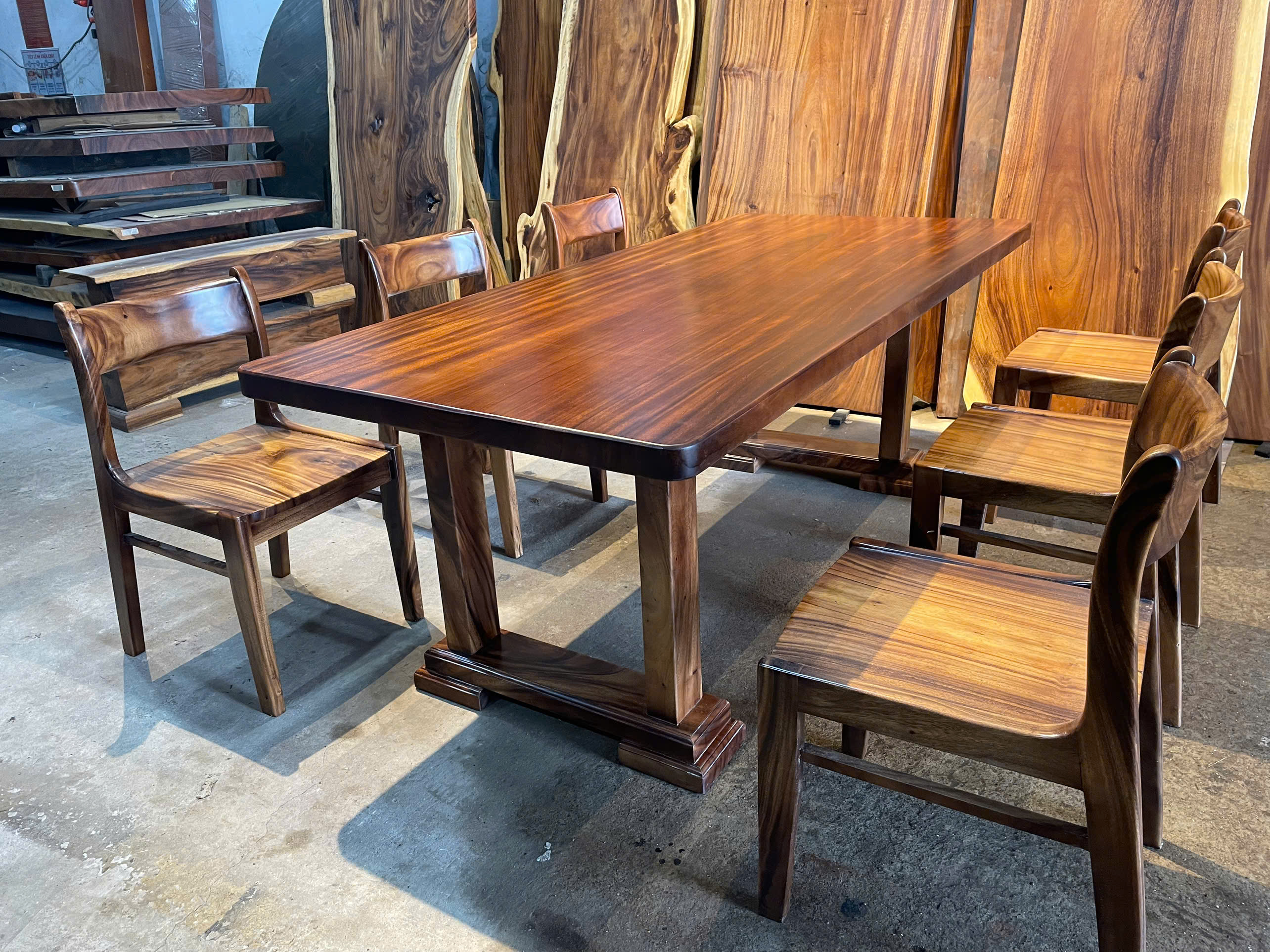 | Chất liệu mặt bàn | Gỗ me tây nguyên khối (100% tự nhiên) | |